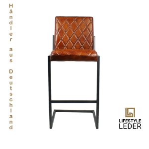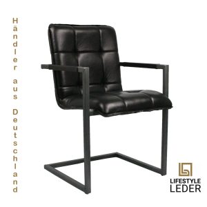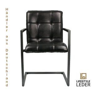 Büffelleder-Freischwinger-Stuhl “Rom” im Industriedesign mit manuell gefertigtem Metall-Rahmen. Der Metall-Rahmen wird nach dem Schweißen noch mit einer pulverbeschichtet, um Korrosion und Kratzspuren zu vermeiden. Die Sitzschale wird aus 100% Büffelleder gefertigt. Das Leder wird per Hand gegerbt, gefärbt und vernäht. Büffelleder-Freischwinger-Stuhle “Rom” bieten auf Grund ihrer Konstruktion ein angenehmes Sitzgefühl, das robuste Stahlgestell und eine qualitativ hochwertige Verarbeitung garantieren eine lange Lebensdauer. Das Produkt wird fertig montiert ausgeliefert.